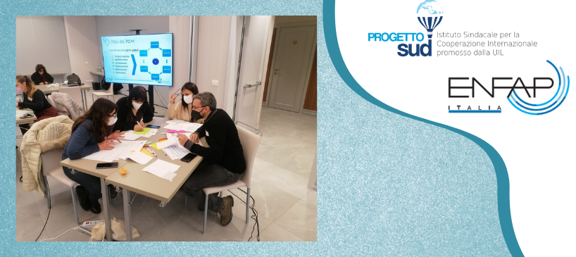 È in corso (13 & 14 Dicembre) a Roma la prima sessione del percorso formativo “Fondamenti di progettazione, gestione e rendicontazione di finanziamenti pubblici” coordinato da Enfap Italia e che vede Progetto Sud impegnata nel tutoraggio e animazione delle attività formative previste dal programma, nonché nella presentazione di un modulo dedicato al Project Cycle Management.